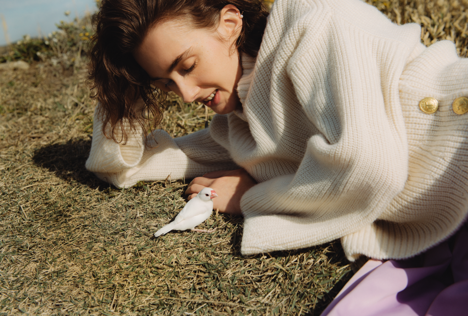 すがすがしく、気持ちよく。重たくなりがちな冬の装いこそ、肩の力を抜いて楽しみたいもの。HAPPYなカラーリングや上質な素材感で、カジュアルだけれども品のある“GOOD GIRL”な気分を忘れずに。広大な自然の中で伸びやかに、白い小鳥と共に幸せを探す旅へ———。