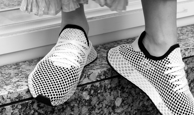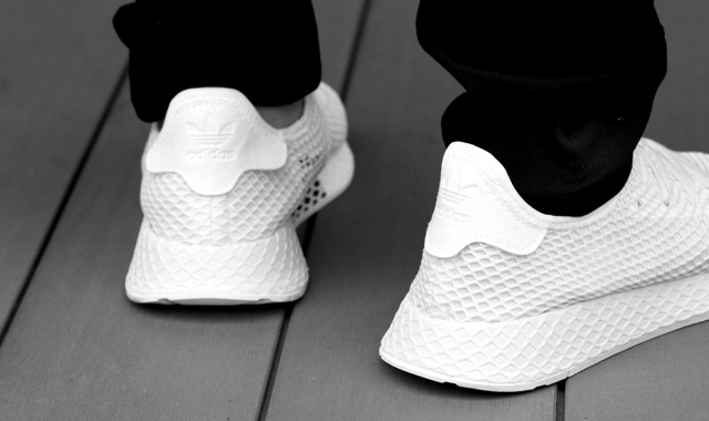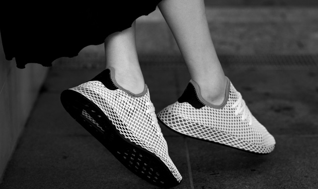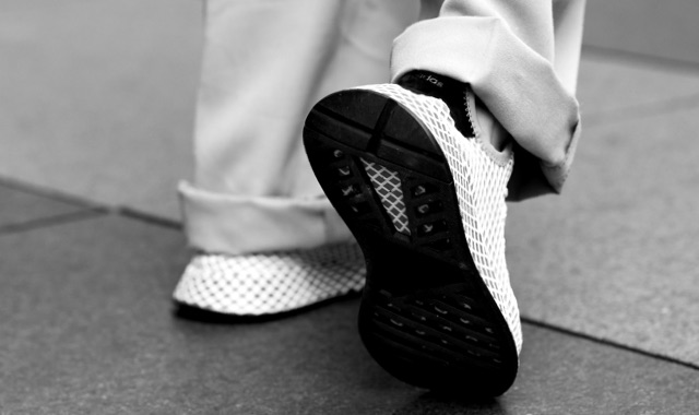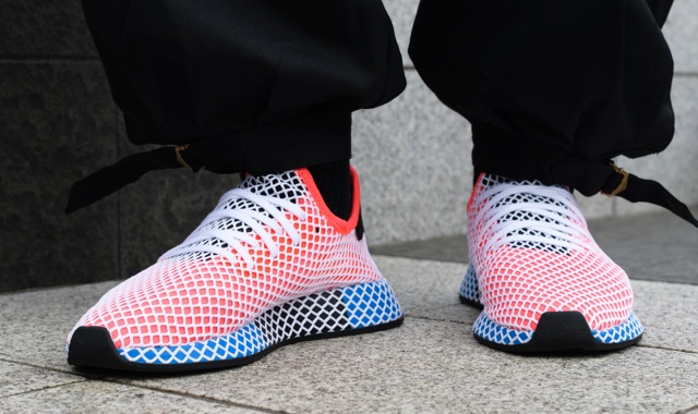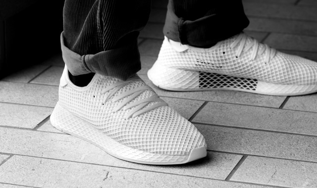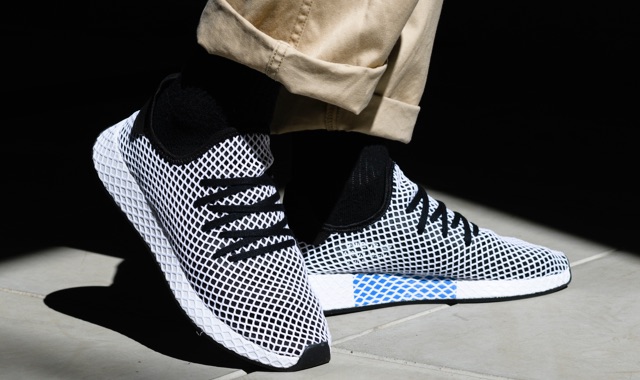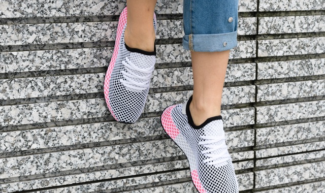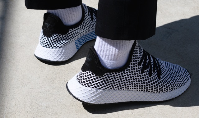 “ディーラプト”を覆う“グリッド”デザイン誕生のカギは、「アディダス」のアーカイブにある。1980年代に人気を博した名作ランニングシューズ“ニューヨーク”や、画期的な機能性で長距離ランナーに愛された“マラソントレーナー”のソールに採用されていた“グリッド”をシューズ全体にあしらった。さらにクッション性やフィット感を追求し、快適性な履き心地を実現。3月22日から世界一斉発売。