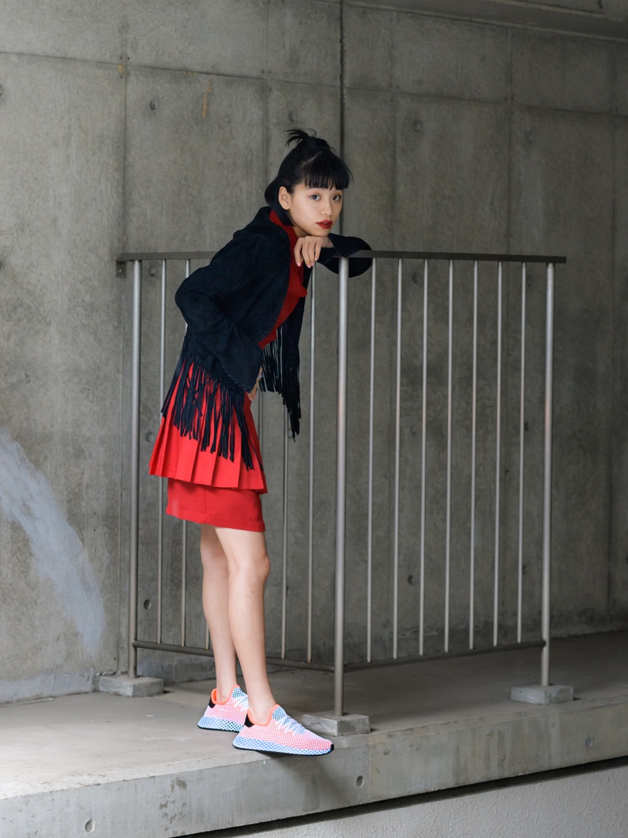 モデル、女優として活動する傍ら、趣味でイラストも手がけるなど多才な中田クルミは、ワンピースやデニムパンツなどを合わせるバリエーション豊かなコーディネートを紹介。ストリートからガーリーまでミックス感のあるスタイリングに、豊富なカラーをそろえる“ディーラプト”のブラックピンクが華を添える。