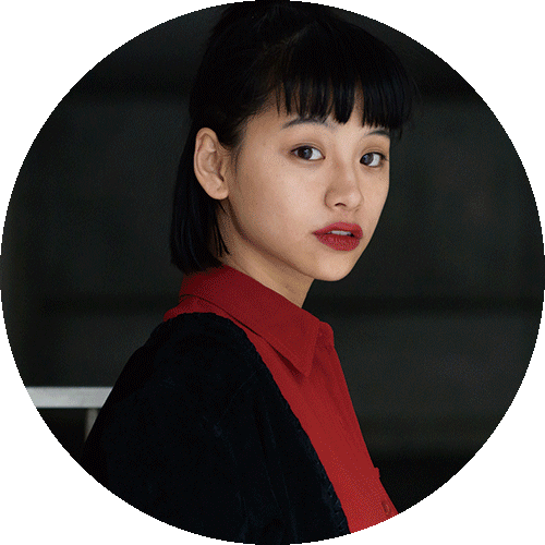 モデルとして活動するる鹿は、日本国内をはじめアジア各国からの支持も厚い。3カ国語を使いこなす他、出身地の中国ではファッションデザイナーとしての顔も持つ。自身のスタイルを確立している彼女が選んだのは、トリコロールの“ディーラプト”。黒、白、赤のシンプルなワンピースに“グリッド”が映える。