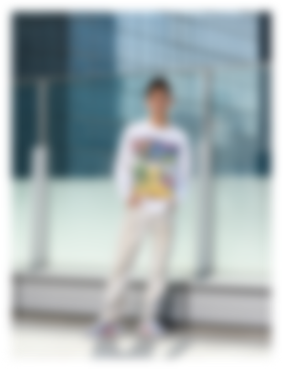 「メンズノンノ」で専属モデルを務め、俳優としても活躍する清原翔は、「アディダス」のシグネチャーであるトリコロールカラーに合わせて、青と赤をメーンとしたシンプルなスタイリングを提案した。「普段は暗い色が好きでよく着がちだけど、最近は明るい色柄物を着たい気分」と語った。