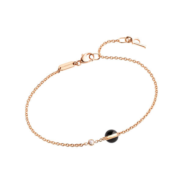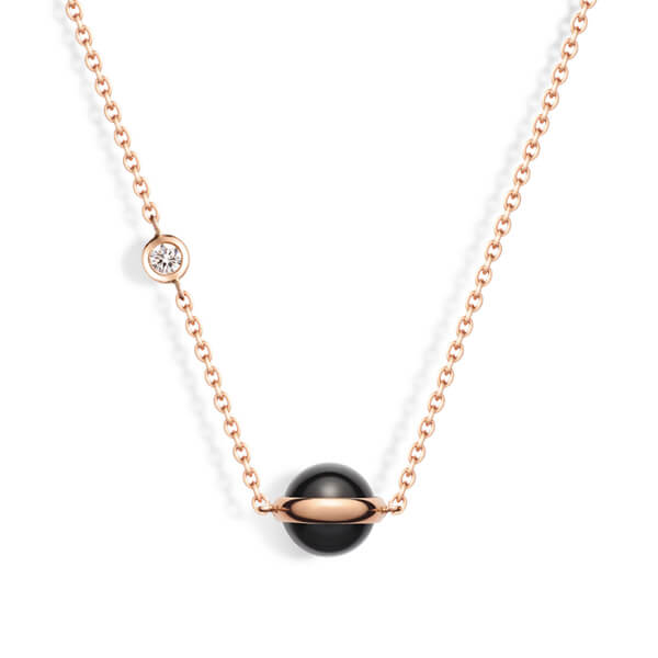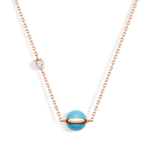 柔らかな午後の光に合わせたのは、揺れるフリンジの繊細さに呼応するようななめらかな曲線のブレスレットとペンダント。ラピスラズリとターコイズ、オニキスといったトーン違いのカラーパレットが大人の遊び心を表現している