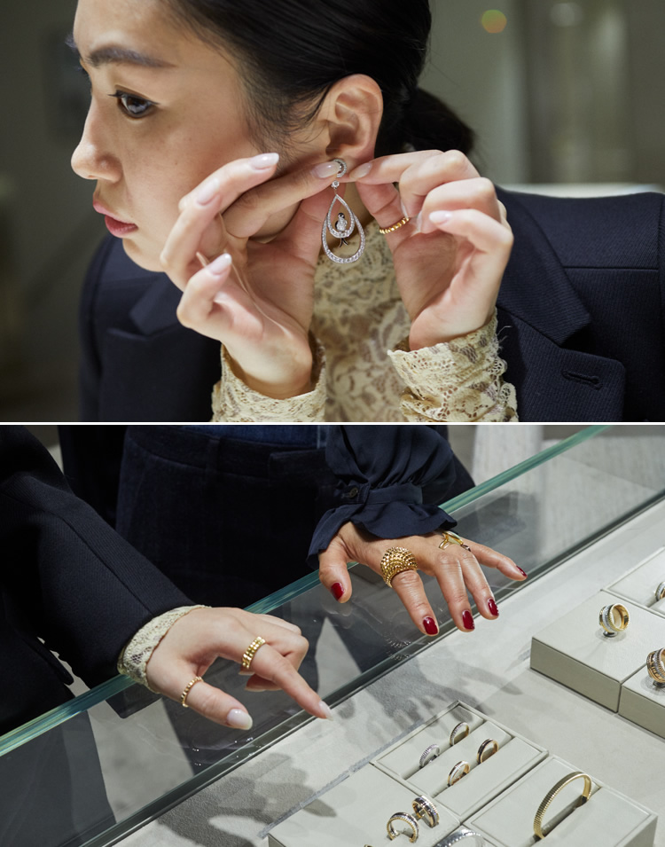 ファッション誌などのジュエリー特集や俳優のスタイリングなど、ジュエリーに関わる仕事も多い2人。そんな2人が「ブシュロン銀座」を訪れると……。