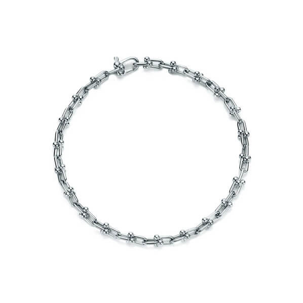 (右手、手首側から)“ティファニー ハードウェア マイクロ リンク ブレスレット”[SIL] 4万2500円、“ティファニー ハードウェア ボール ワイヤー ブレスレット”[SIL] 5万6000円、“ティファニーT ワイヤー ブレスレット”[18KWG] 21万円、(左手、手首側から)“ティファニー ハードウェア ボール ワイヤー ブレスレット”[SIL] 5万6000円、“ティファニー ハードウェア リンク ブレスレット”[SIL] 6万7000円、(中指)“ティファニーT ワイヤー リング”[18KWG] 9万9000円