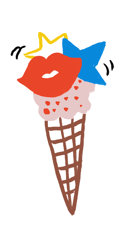 「エニウェア・ドア 原宿店」のショーウインドーには、チョコをコーティングした日本初上陸のコーンショット(380円)が色とりどりにディスプレー。お好みのフローズンドリンク(250円)を組み合わせれば、今話題のハイブリットスイーツが完成! 「パイナップルのフローズンとチョコレートが口の中でとろける〜♡ 組み合わせを考えるのも楽しい!」(エモン久瑠美)