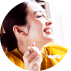 涼しげなペールトーンの着こなしが、自然光の差し込む開放的な空間にマッチ。コーディネートの仕上げには、流れるようなラインがアーティーな“オープンハート”のフープ ピアスをセレクト。上質なシルバーの輝きが、さりげなくクラス感を演出してくれる。「曲線を描いたハートのフープ ピアスは、女性らしくもスタイリッシュな大人のスタイルを完成させてくれます」(桐谷美玲)
