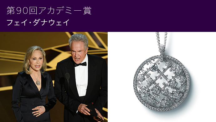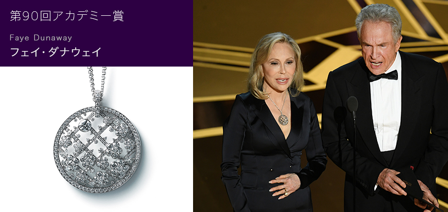 格子窓から眺める冬の梅園をモチーフに、咲き誇る梅の花と静かに降る雪を表現したハイジュエリー。世界で最も注目される女優の1人であるジェニファー・ローレンスは、同コレクションのブレスレットをチョイス。大女優のフェイ・ダナウェイは胸元の開いたドレスに“梅宴”のペンダントをコーディネートした。