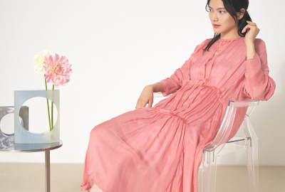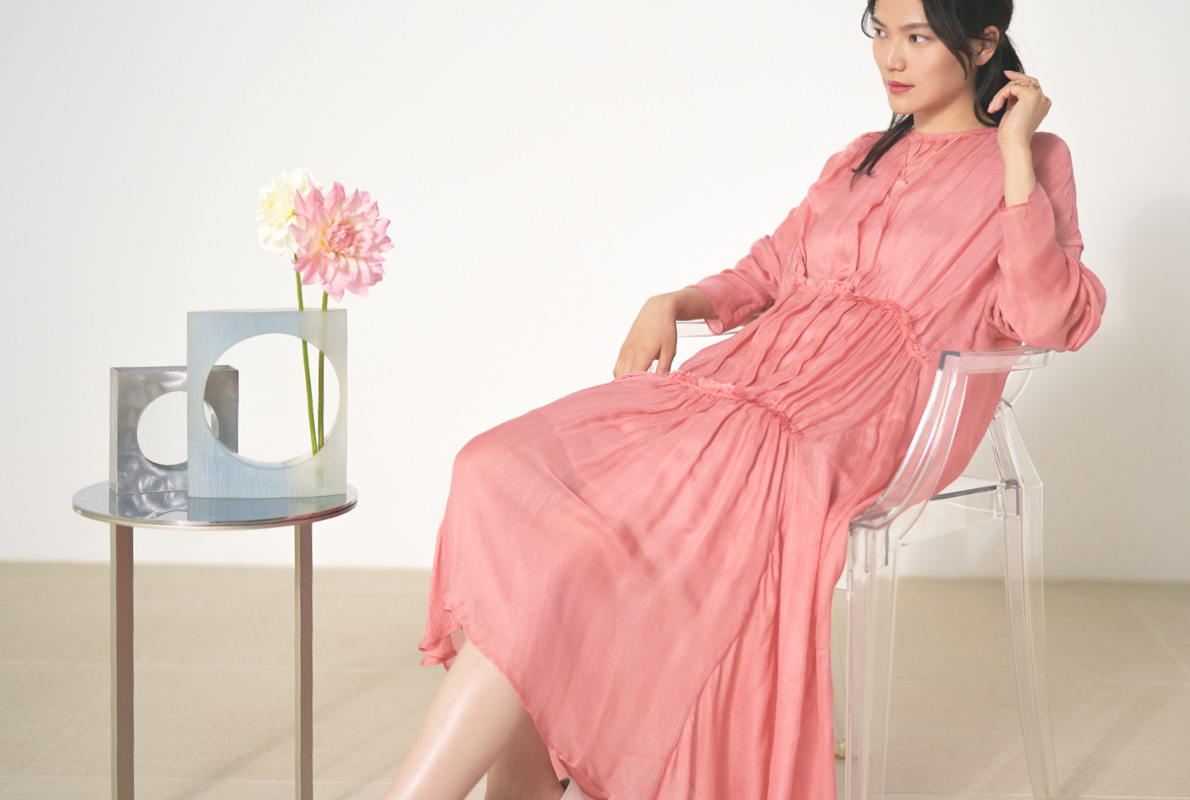 ダリアの花のような、ピンクのワンピースを買った。柔らかな彩りとシアーな質感が思った以上に肌になじんで、着る前に感じていた一抹の気恥ずかしさをふわりと吹き飛ばして。「いくつになっても、自分の好きには正直でいたい」。あの頃のわたしが、そうつぶやいている気がした。