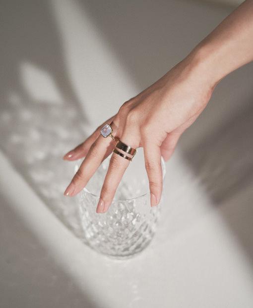 左手中指リング17万1000円/リサ・エルドリッジ、左手薬指リング23万4000円/レポシ(共にドーバー ストリート マーケット ギンザ03-6228-5080) 、ネックレス27万5000円/ガブリエラ・キス(ソース03-3443-5588)、シューズ4万2000円/カチム(カチム03-6303-4622)、ドレス/スタイリスト私物