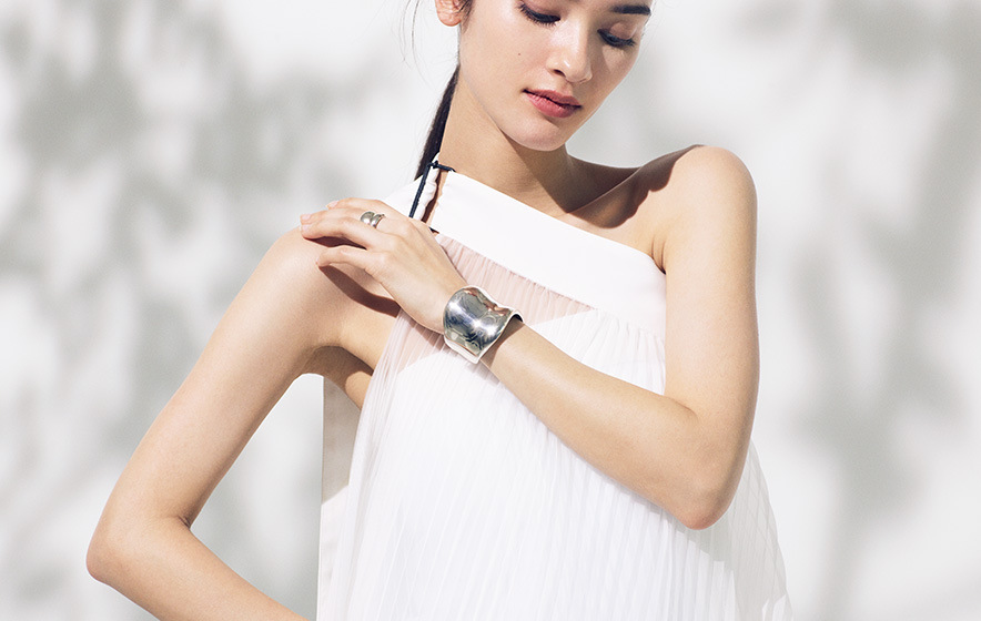 よく手入れされたシルバーを身に着けると、気持ちがしゃんとする。このイノセントな光に恥じない自分でいたいと願うから。背筋をのばして、襟を正し、肌には一片の乾きも曇りもないように。そうして生まれるのは“自信”という名の見えないオーラ。純銀の輝きと響きあい、誰の心をも惹きつけて。