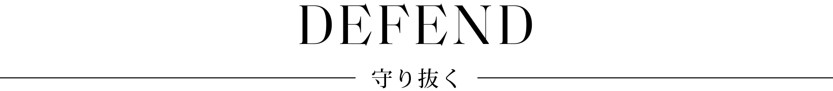例えば、ダメージから”守り抜く”。そして本来の美しさを”引き出す”。2つの重要な素質を生かしたケアによって美しさを増していく……そのメカニズムまで含めて、きちんと理論立てしたのが、「守り抜く=DEFEND」と「引き出す=REGENERATE」を組み合わせる、スキンケアの新理論「DEFEND & REGENERATE」。”守り抜く”と”引き出す”は、言ってみればスキンケア上の必要十分条件。バラバラだったら、隙だらけになってしまう働きが、がっちりと覆うということ。断片的だった働きが、いきなり3次元のものになると考えてもいい。そこまでの違いが生まれることを、知性ある人なら感じている。いや、知性ある人は感性も併せ持っているからこそ、この理論の普遍性に気づくはずなのだ。