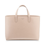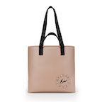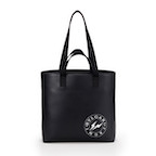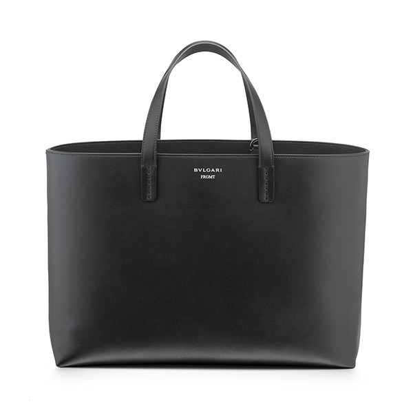 「海外に行くときは、この大きなバッグに好きな本と小さな枕、あとiPadを入れてサッと旅に出るのが理想!」(森星)。上質な一枚仕立てのレザーを使用したトートバッグは、ショルダーと手持ちの2WAY仕様。右下には、“ブルガリ・ブルガリ”のロゴをベースにして中央にサンダーボルトを配した“BBフラグメント”のオリジナルロゴが施される。バッグを主役に、冒険心あふれるホログラムカラーのトップスにパテント素材のパンツを合わせ、コンテンポラリーなスタイルが完成。