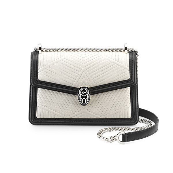 - バッグ(黒)“セルペンティ”27万5000円、バッグ(白)“セルペンティ”25万円、首に巻いたシェリー“セルペンティ”1万8000円