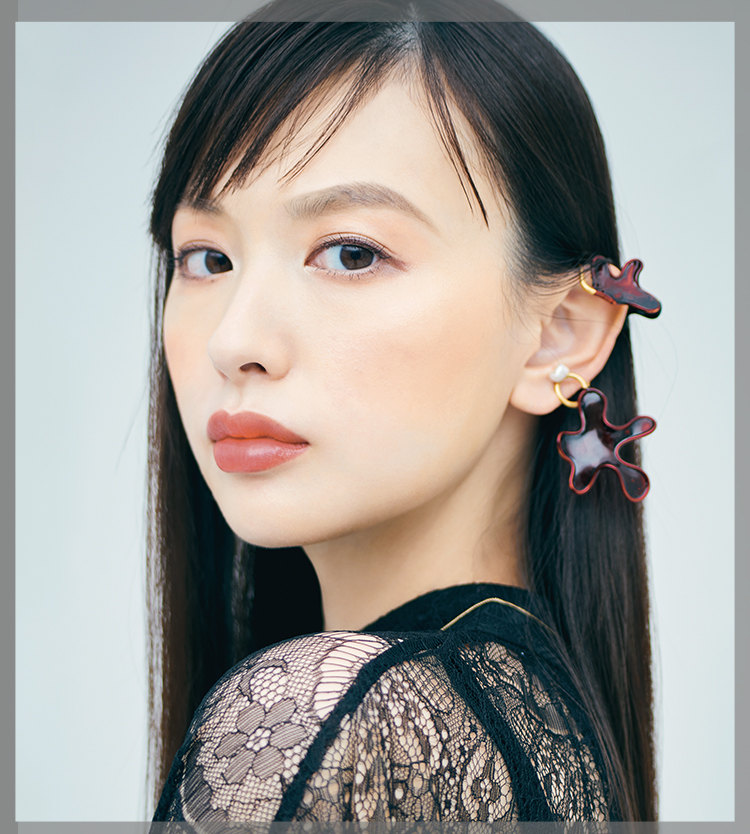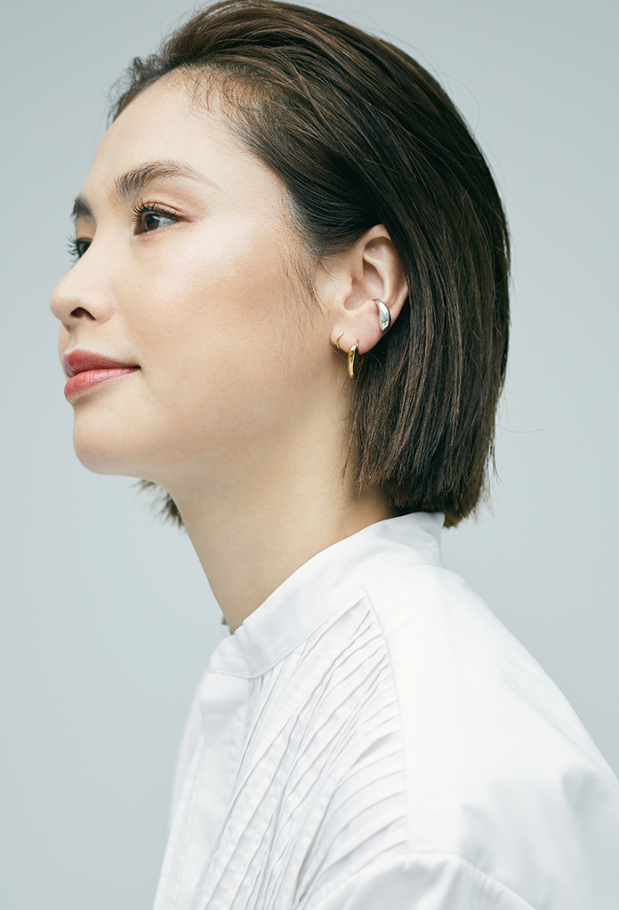 トップス3万9000円/フィルザビル(シック 03-5464-9321)、イヤーカフ1万1000円/ファリス(ジャーナルスタンダード 表参道 03-6418-7958)