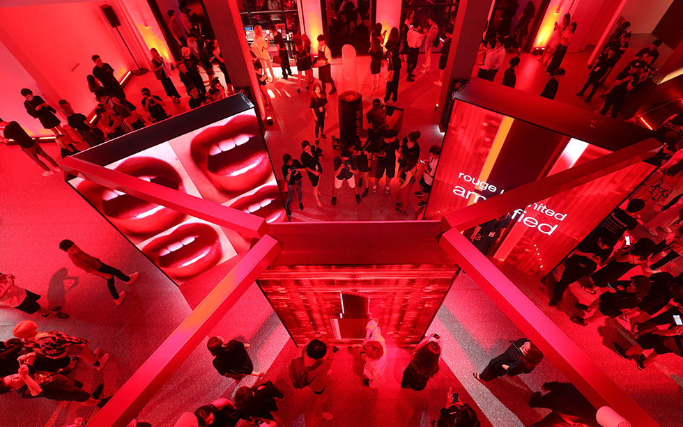 会場では、「アンプリファイド」の世界観を表現した赤一色のダイナミックなプロダクトビジュアルと、新リップの魅力を体験することができる多彩なデジタルコンテンツがお迎え。黒と赤のコーディネートに身を包んだ来場者でいっぱいの会場を湧き上がらせた。さらに、新テクスチャー「アンプリファイド」を含め、“ルージュ アンリミテッド”全155色がタッチアップできるブースも多く設けられた。また、インターナショナル アーティスティック ディレクターuchiide氏率いるシュウ ウエムラ アトリエチームのトップアーティストによるメイクアップショーも行われ、より深く「アンプリファイド」の世界観を表現。日本から来場したモデルの横田ひかるを始め、各国から訪れた来場者たちを大いに楽しませた。