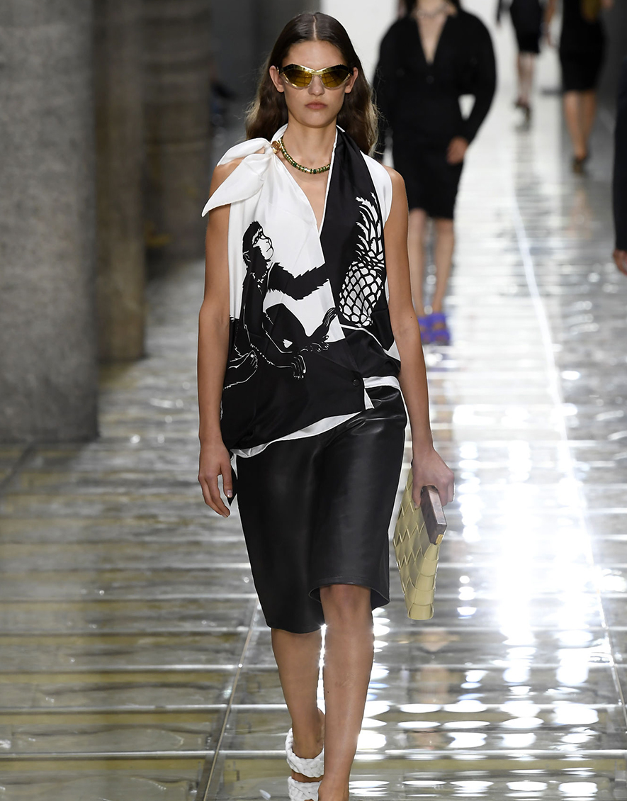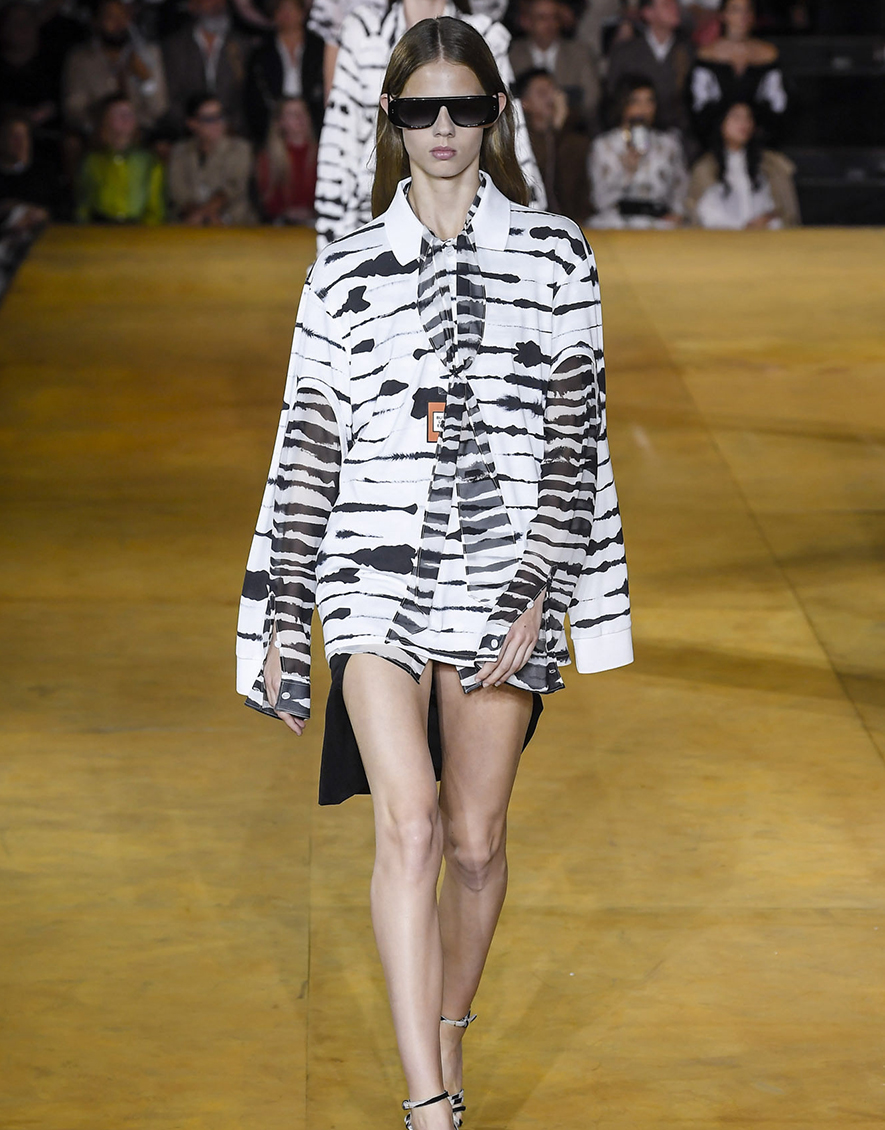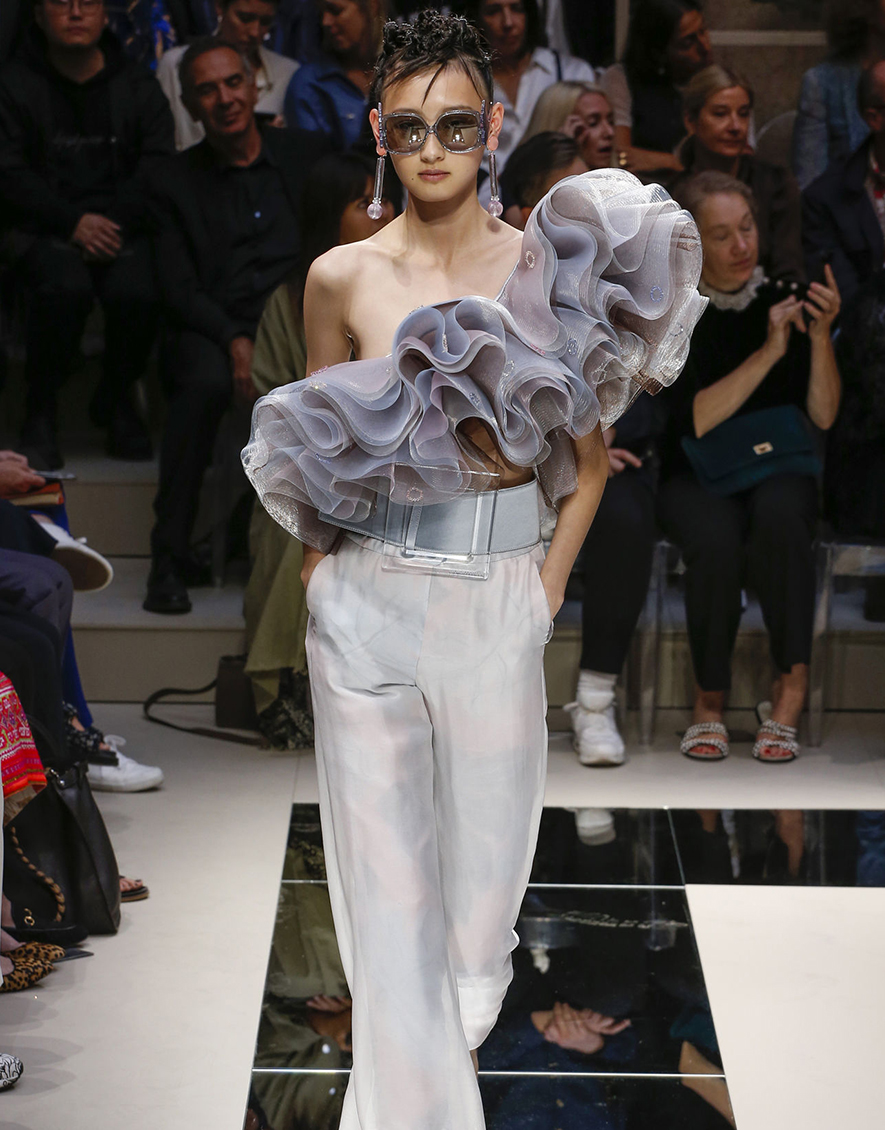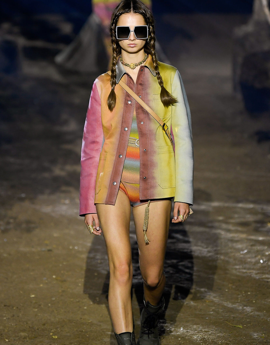 パリとミラノの2020年春夏コレクションのランウエイには、存在感のあるサングラスとのコーディネートが数多く登場した。目立ったのは、顔の半分を覆うほどのビッグサイズ、レトロ調のオレンジやピンクの淡いカラーのレンズ、ゴーグル調のスポーティーなレンズ。アイウエアの最新トレンドはレンズの変化がポイントだ。
