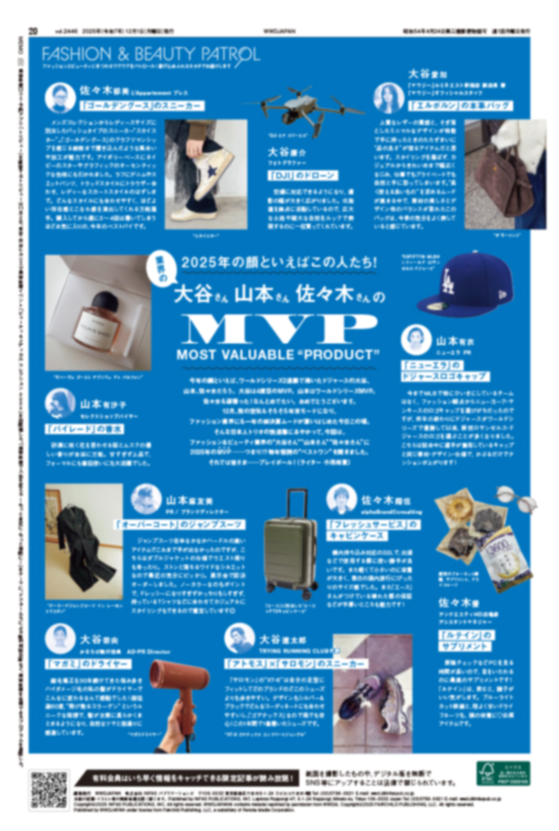 「WWDJAPAN」の人気&定番連載の裏表紙コーナー「ファッション&ビューティパトロール」では業界人9人の「2025年のMVPアイテム」を紹介しています。読者の皆様のMVPとぜひ照らし合わせてみてください。
